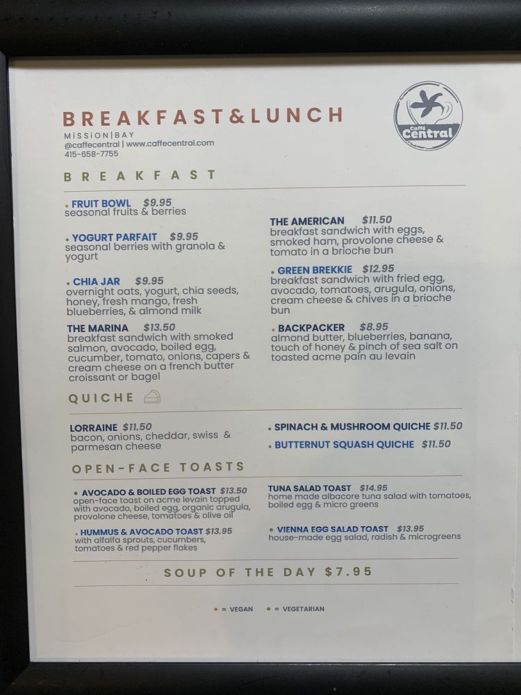 Welcome to Caffe Central San Francisco, a vibrant haven located in the heart of Mission Bay. This bustling café is not just a place to grab a quick bite; it’s an experience of delightful flavors and wholesome ingredients. The menu is a thoughtfully crafted selection featuring a variety of sandwiches, salads, and breakfast options.